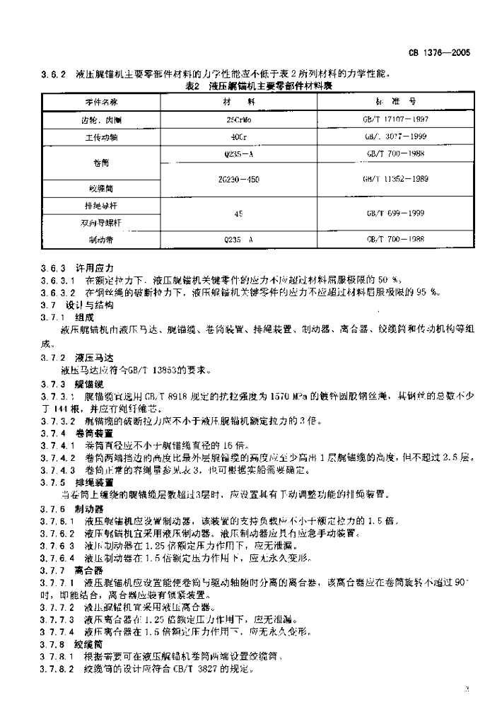CB 1376-2005 登陆舰液压艉锚机规范