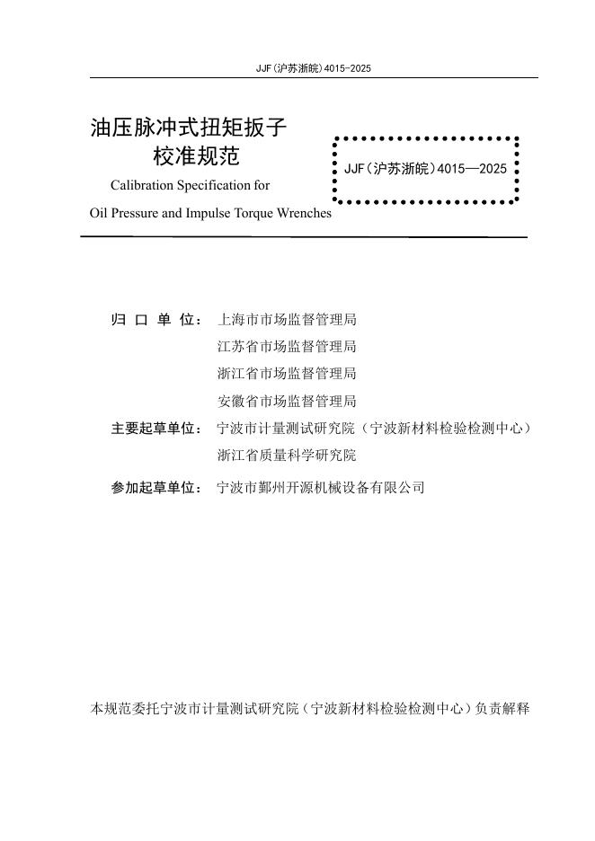 JJF(沪苏浙皖)4015-2025 油压脉冲式扭矩扳子校准规范