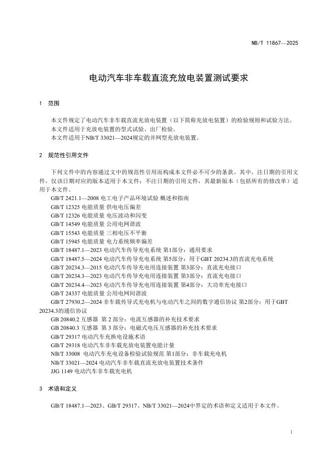NB/T 11867-2025 电动汽车非车载直流充放电装置测试要求