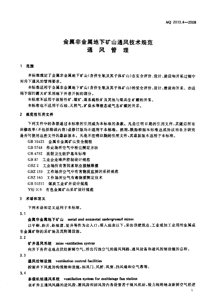 AQ 2013.4-2008 金属非金属地下矿山通风技术规范 通风管理