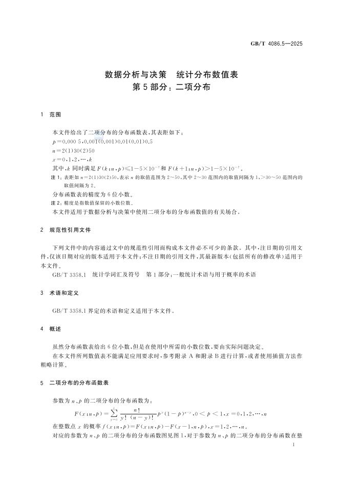 GB/T 4086.5-2025 数据分析与决策 统计分布数值表 第5部分:二项分布