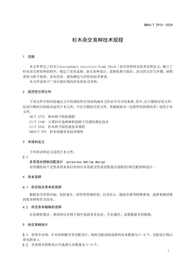 DB45/T 2910-2024 杉木杂交育种技术规程
