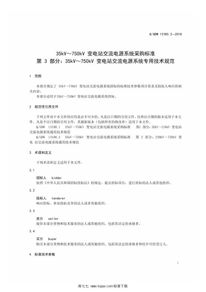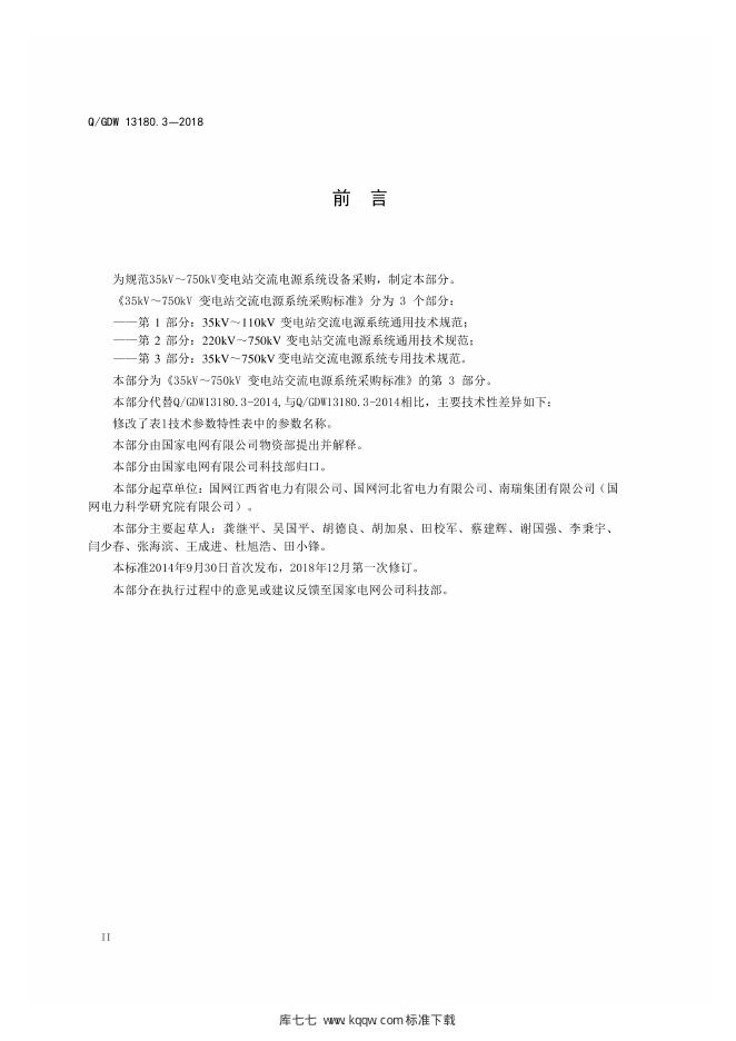 Q/GDW 13180.3-2018 35kV~750kV变电站交流电源系统采购标准 第3部分:专用技术规范