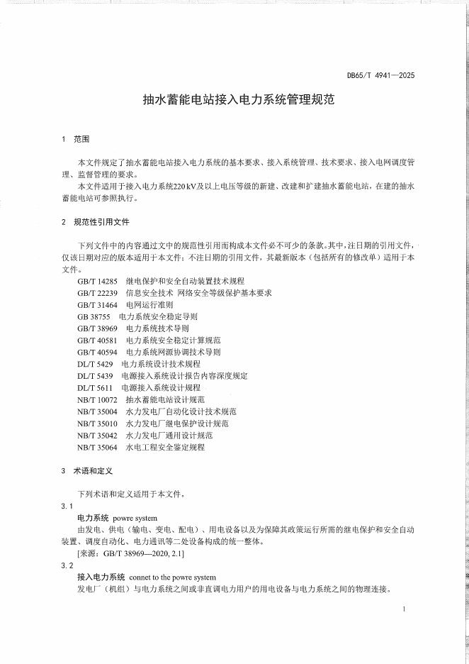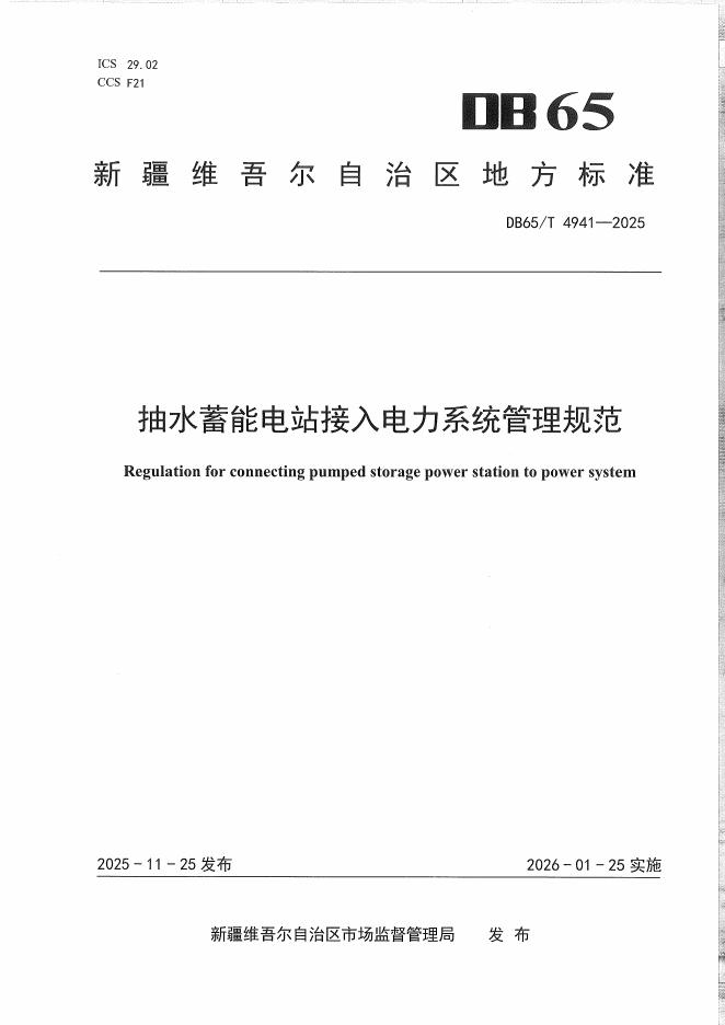 DB65/T 4941-2025 抽水蓄能电站接入电力系统管理规范