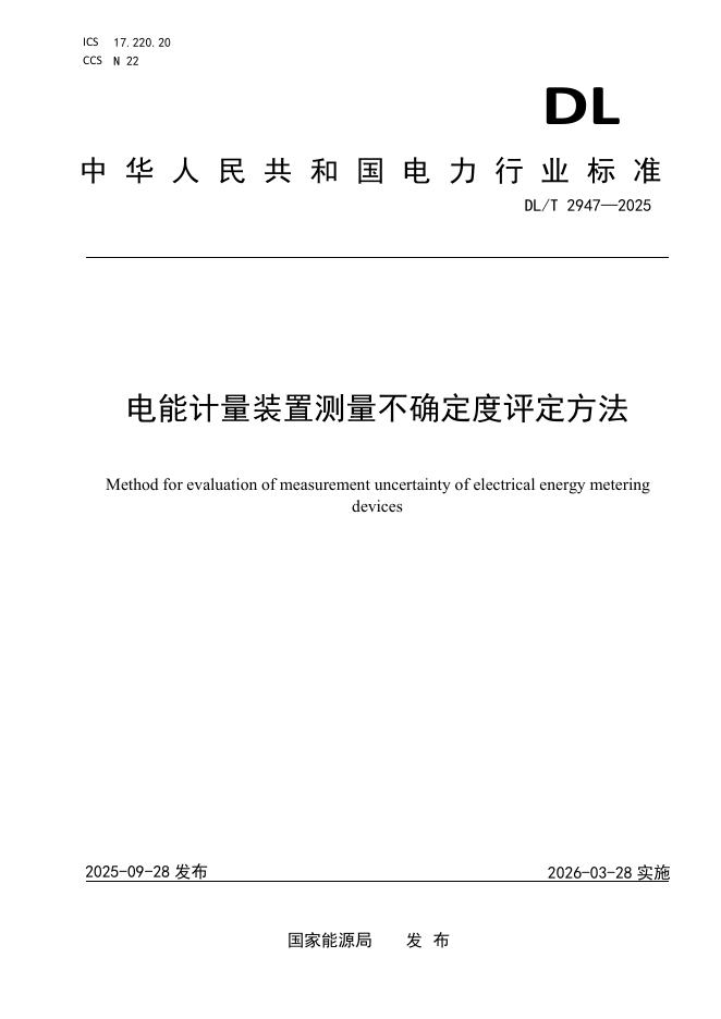 DL/T 2947-2025 电能计量装置测量不确定度评定方法