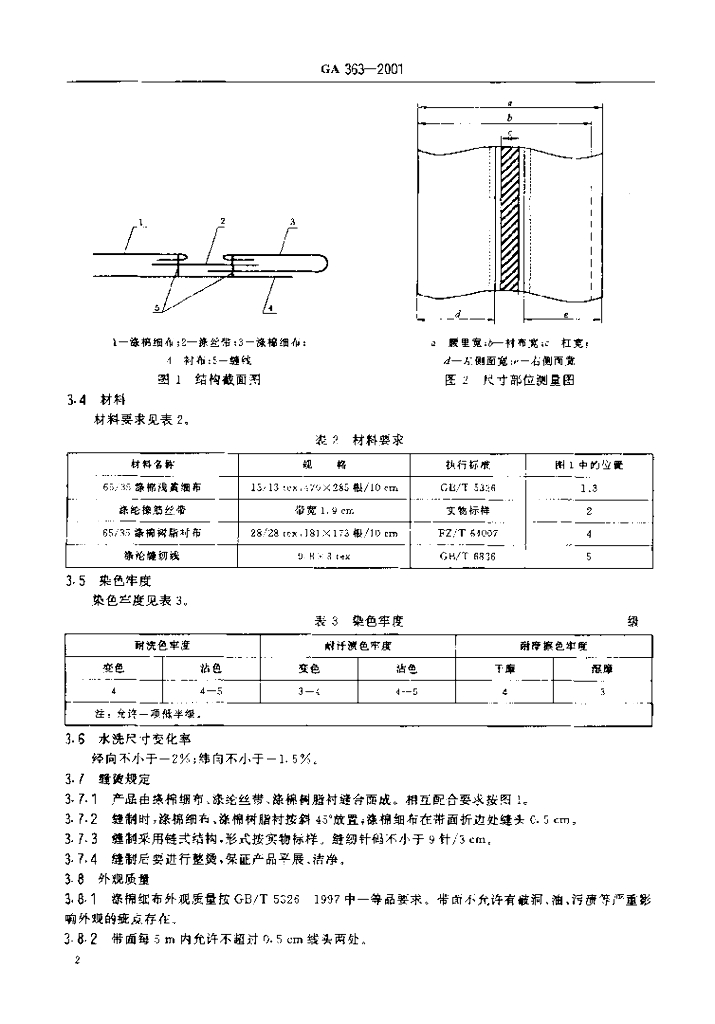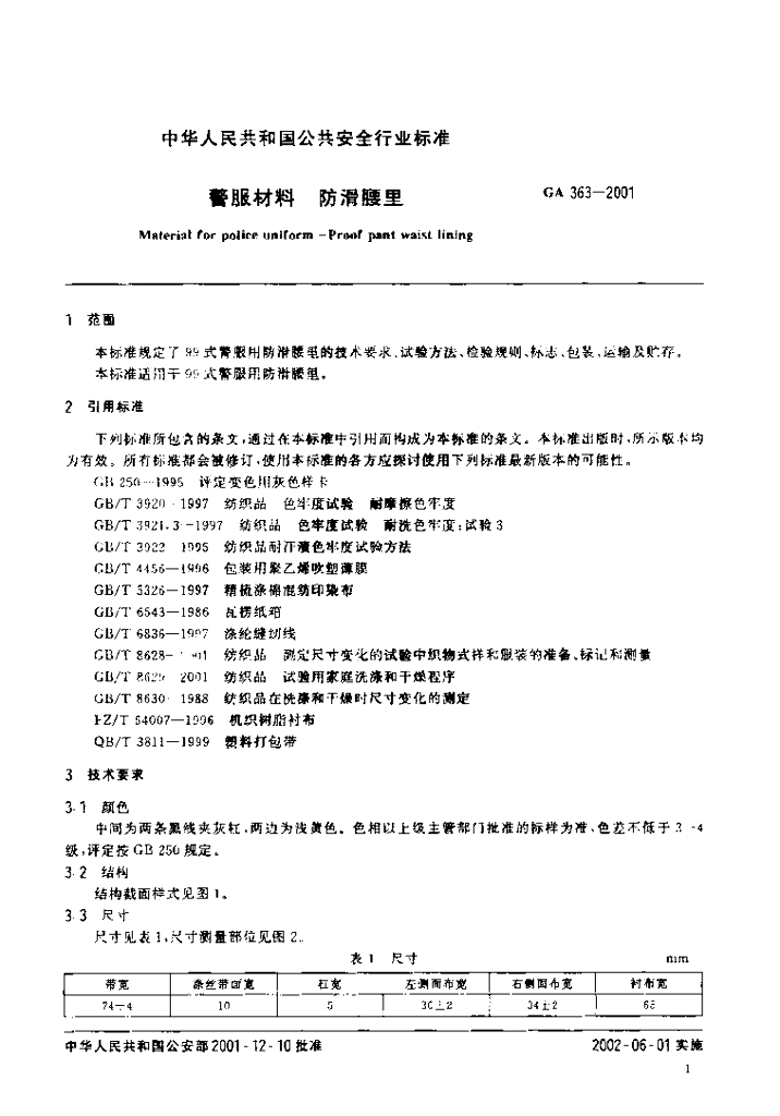 GA 363-2001 警服材料 防滑腰里