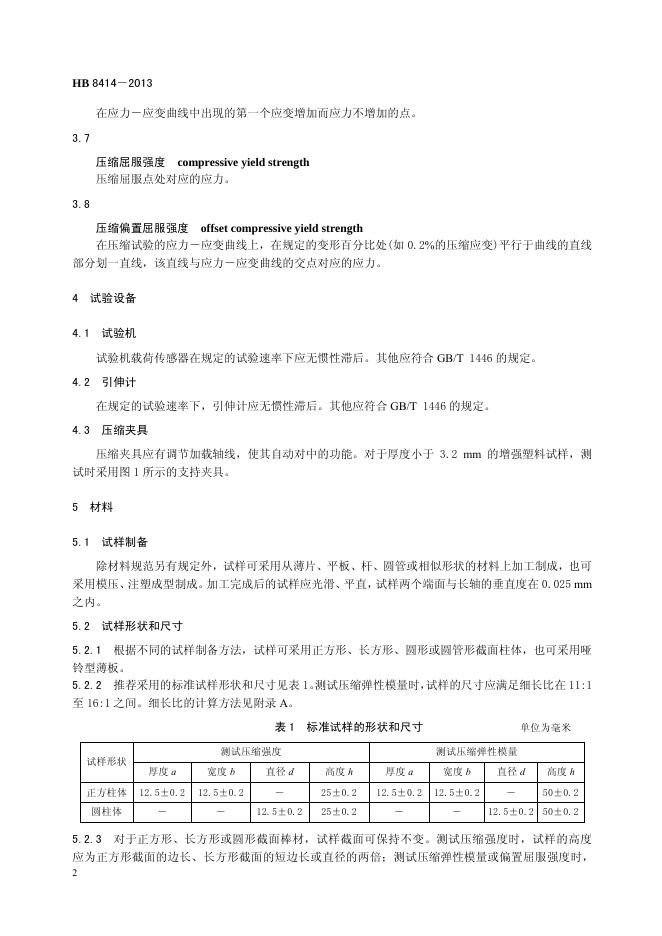 HB 8414-2013(2017) 硬质塑料压缩性能试验方法