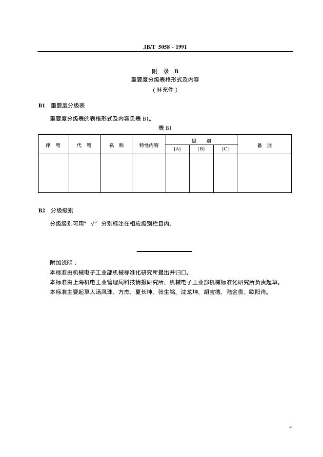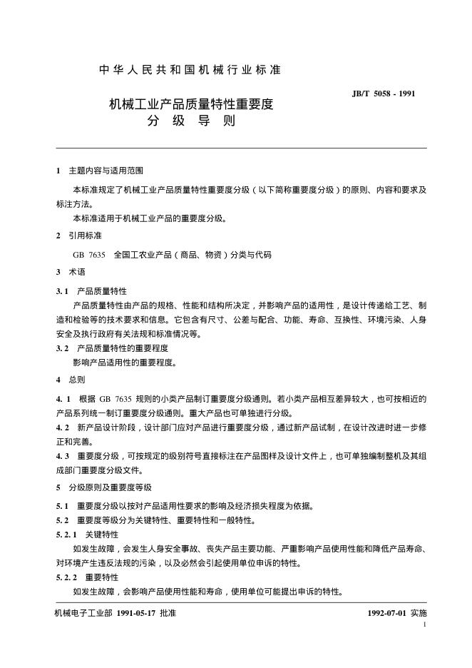 JB/T 5058-1991 机械工业产品质量特性重要度分级导则