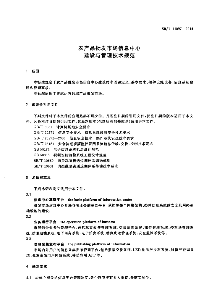 SB/T 11097-2014 农产品批发市场信息中心建设与管理技术规范