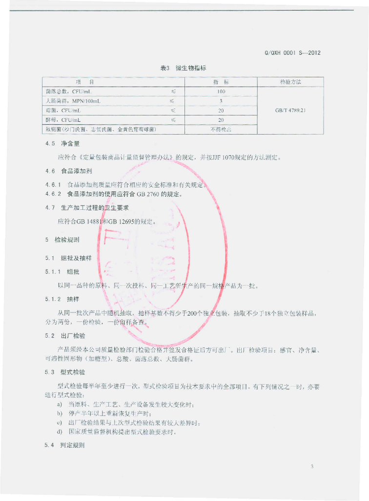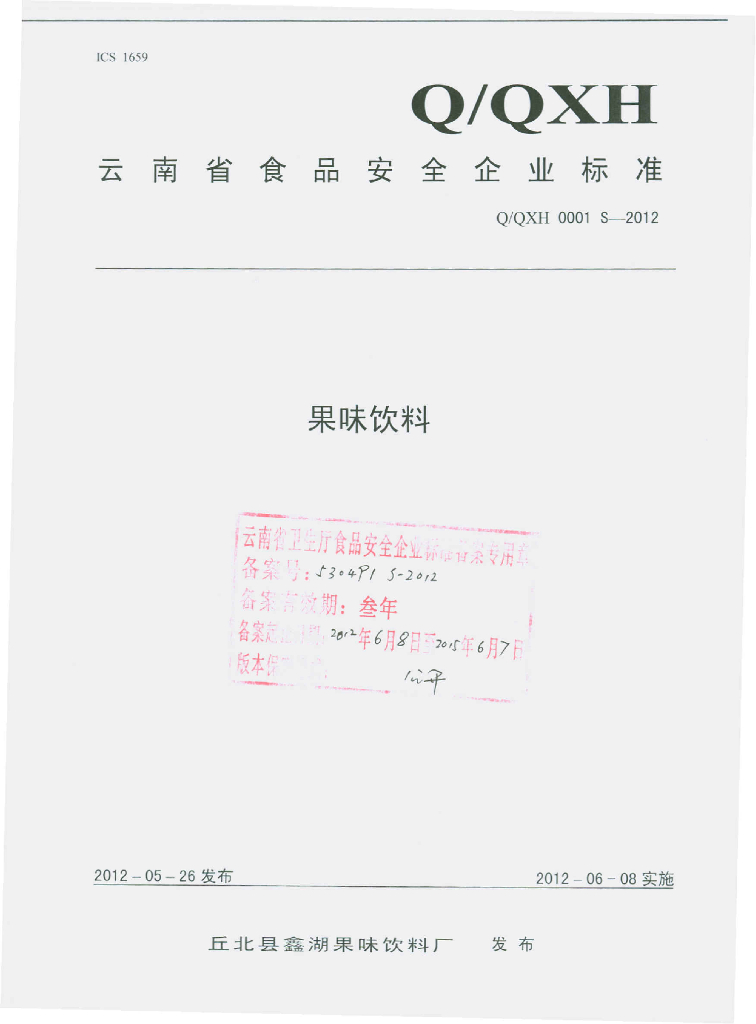 Q/QXH 0001S-2012 果味饮料