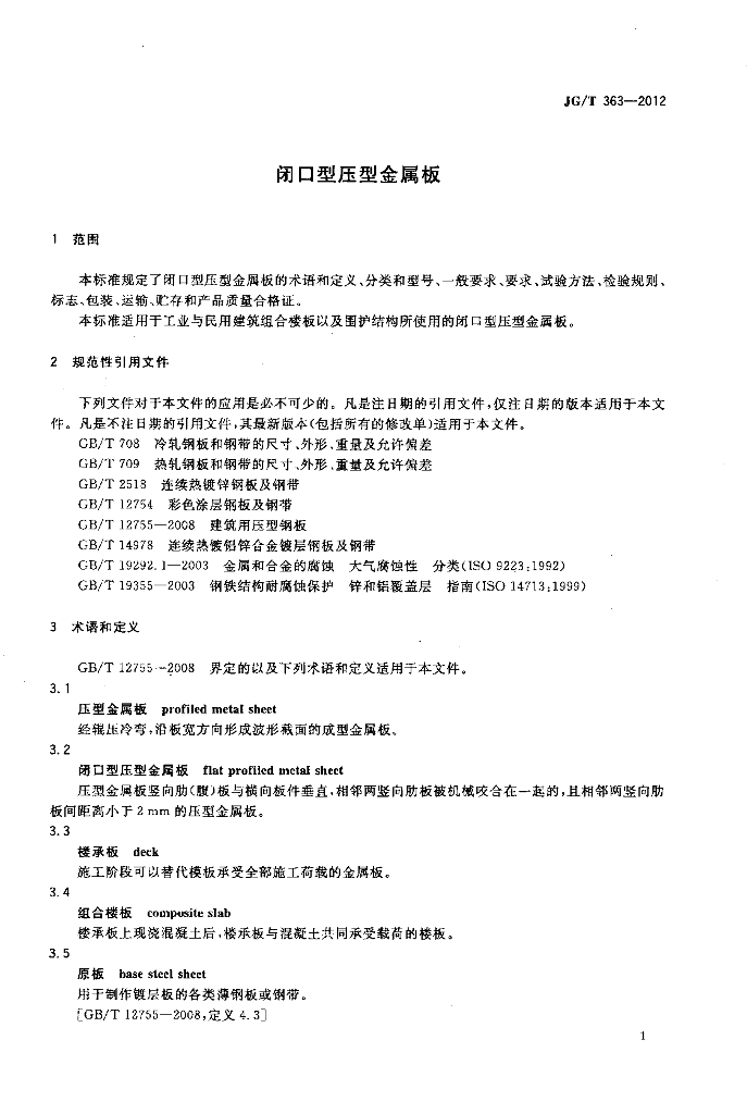 JG/T 363-2012 闭口型压型金属板