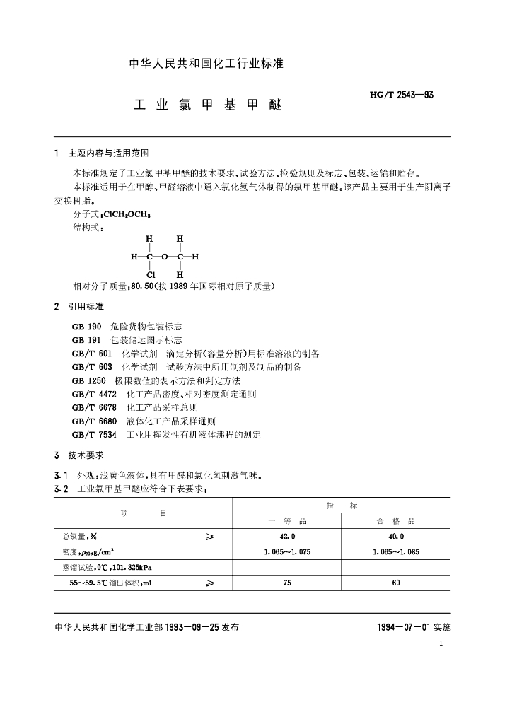 HG/T 2543-1993 工业氯甲基甲醚