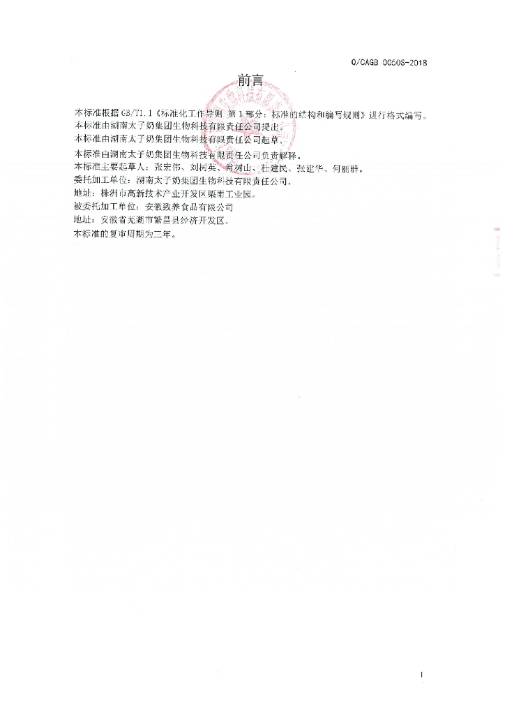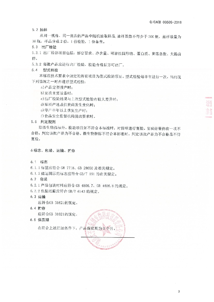Q/CAGB 0050S-2018 复合蛋白饮品