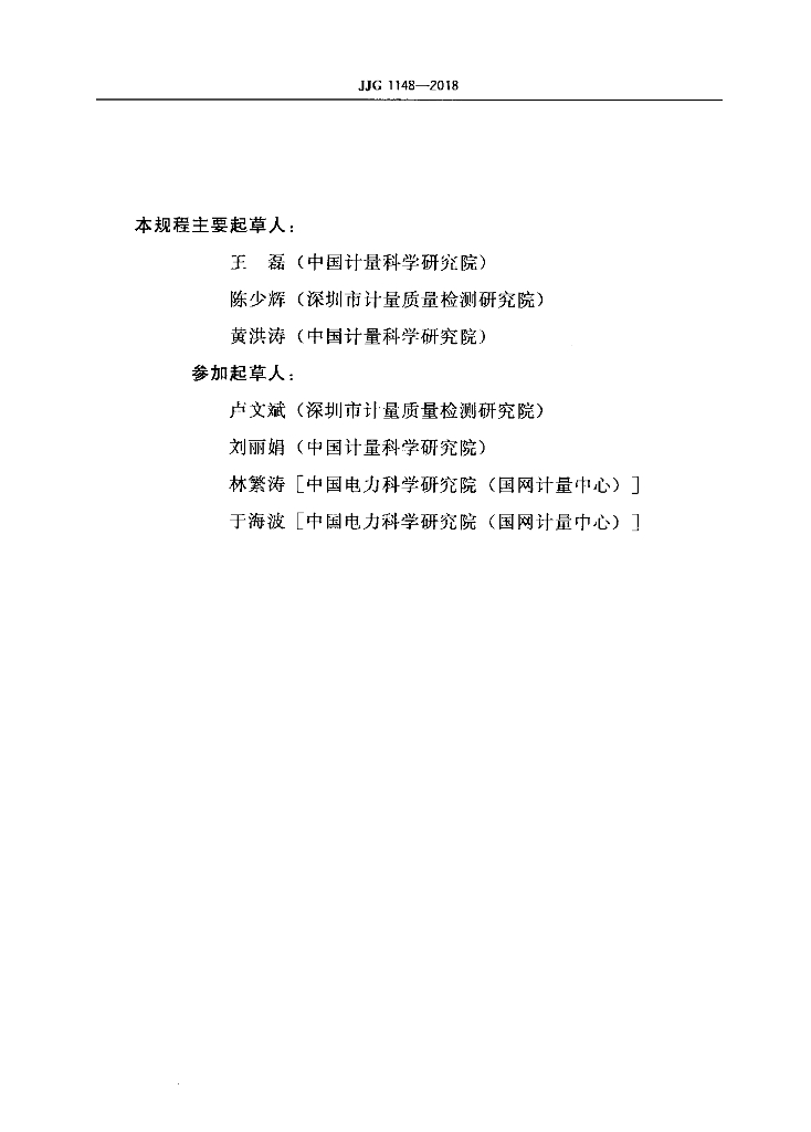 王磊(中国计量科学研究院)、陈少辉(深圳市计量质量检测研究院)、黄洪涛(中国计量科学研究院)、卢文斌(深圳市计量质量检测研究院)、刘丽娟(中国计量科学研究院)、林繁涛[中国电力科学研究院(国网计量中心)]、于海波[中国电力科学研究院(国网计量中心)]