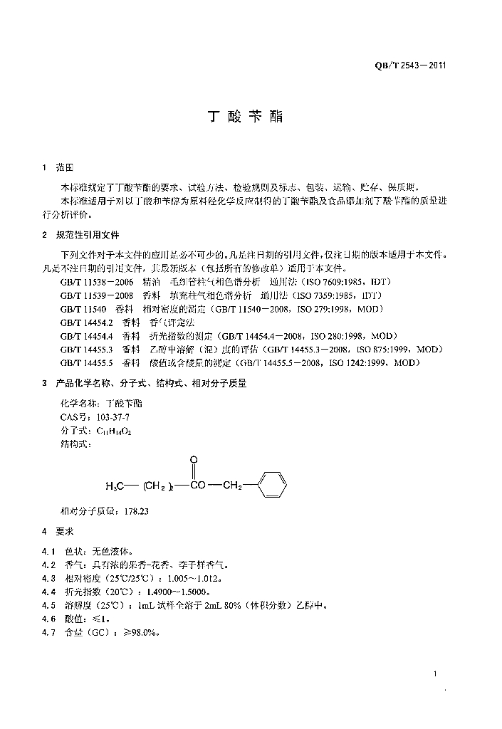QB/T 2543-2011 丁酸苄酯