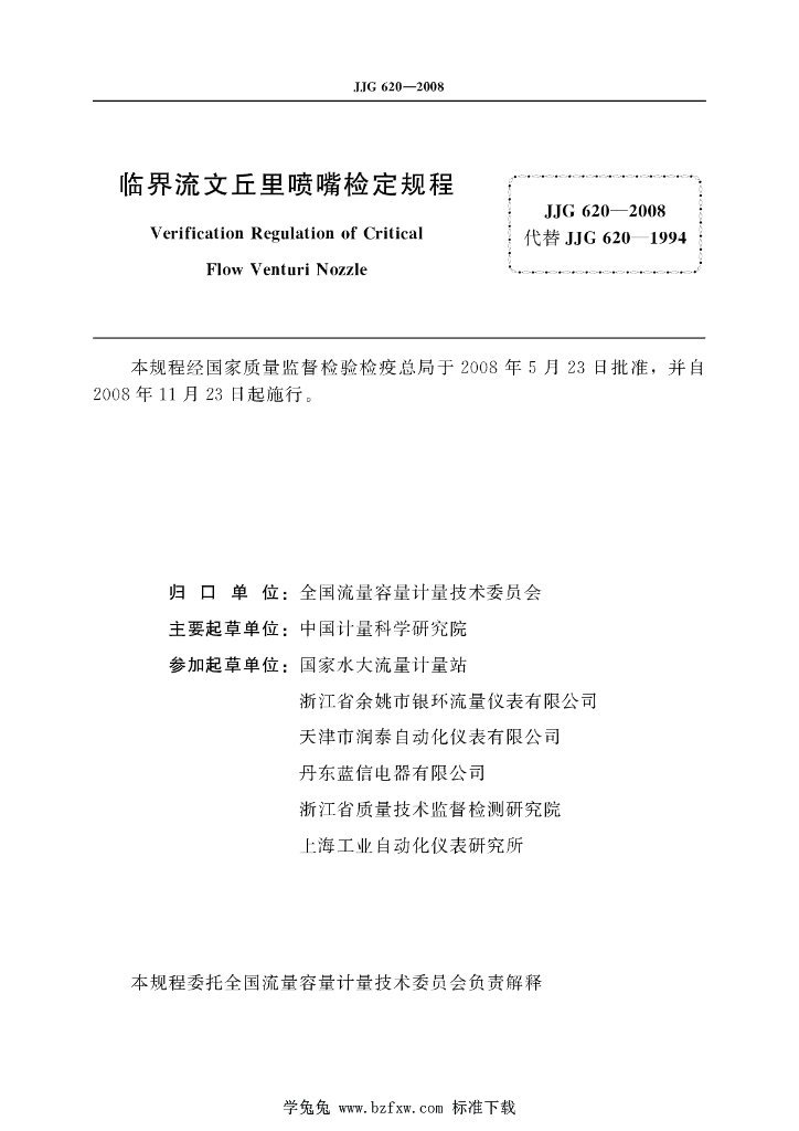 中国计量科学研究院、国家水大流量计量站、浙江省余姚市银环流量仪表有限公司、天津市润泰自动化仪表有限公司、丹东蓝信电器有限公司、浙江省质量技术监督检测研究院、上海工业自动化仪表研究所