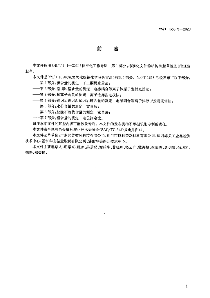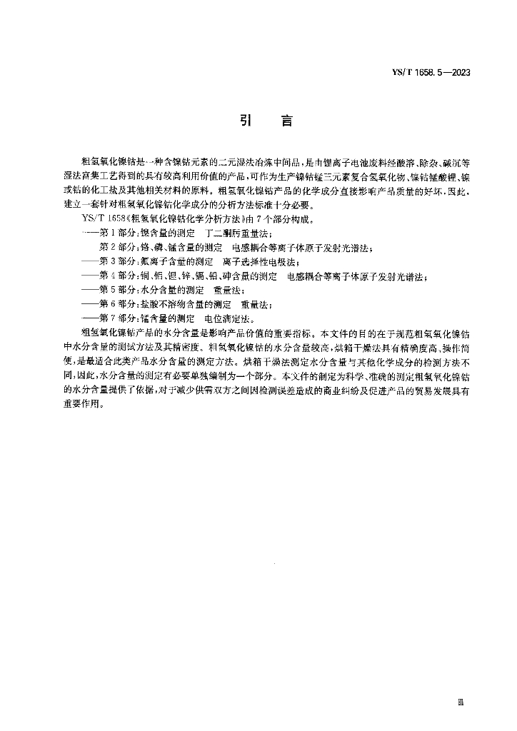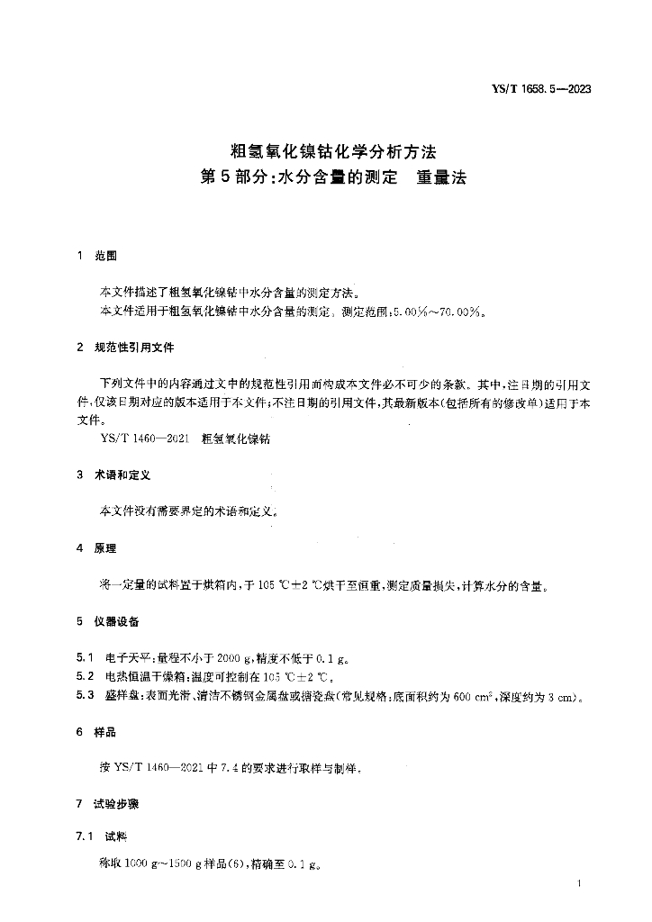 YS/T 1658.5-2023 粗氢氧化镍钴化学分析方法 第5部分:水分含量的测定 重量法
