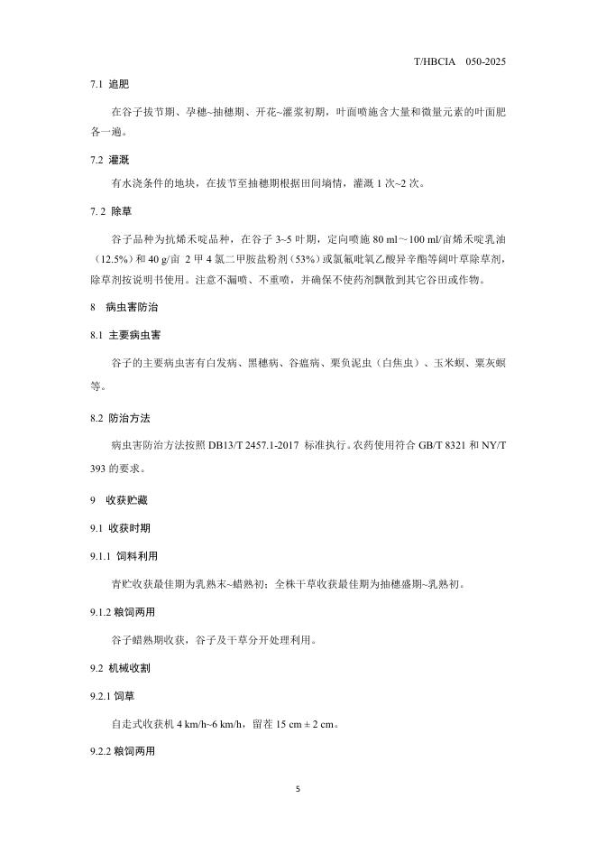 T/HBCIA 050-2025 抗烯禾啶饲用谷子配套栽培技术规范