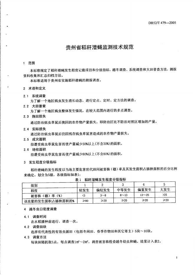 DB52/T 479-2005 贵州省稻秆潜蝇监测技术规范