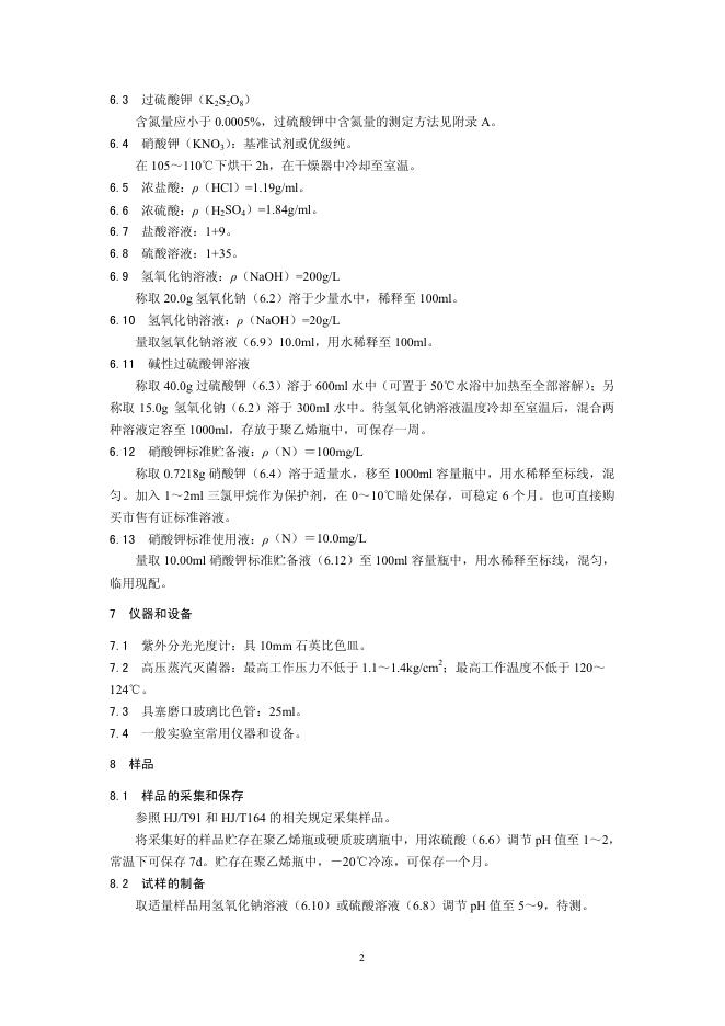 HJ 636-2012 水质 总氮的测定 碱性过硫酸钾消解紫外分光光度法
