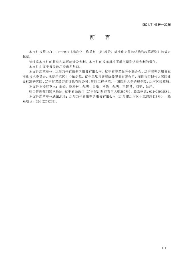 DB21/T 4339-2025 等级养老机构设施设备配置规范