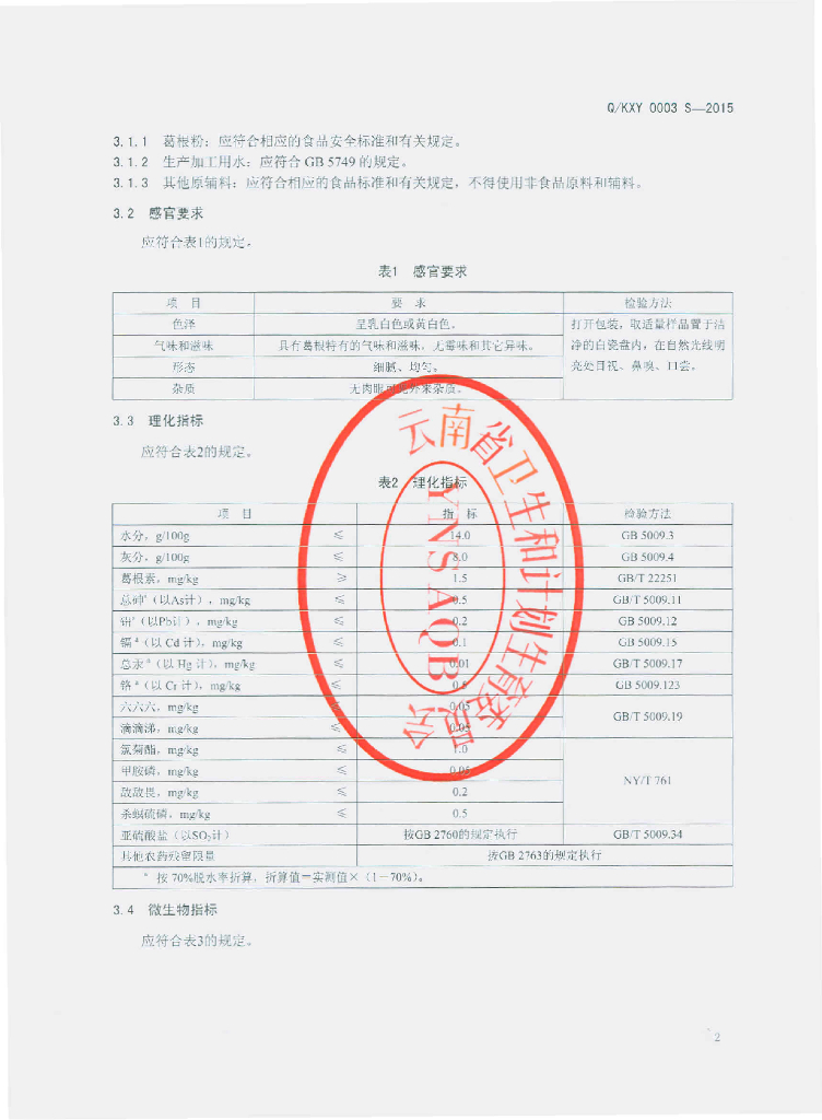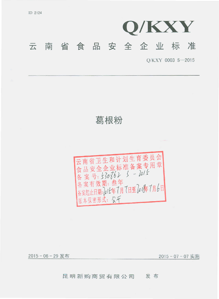 Q/KXY 0003S-2015 昆明新购商贸有限公司 葛根粉