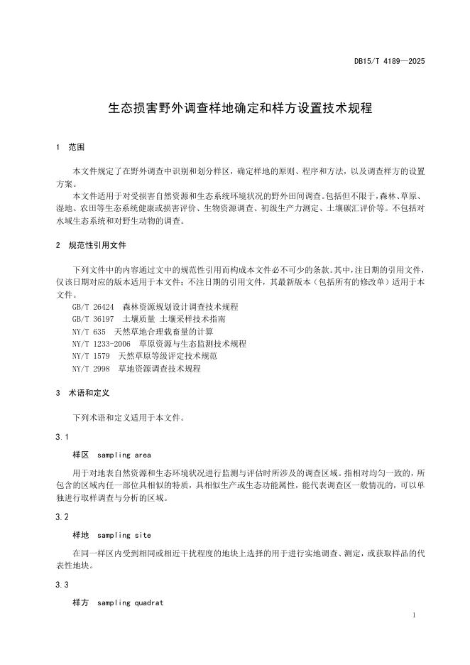 DB15/T 4189-2025 生态损害野外调查样地确定和样方设置技术规程