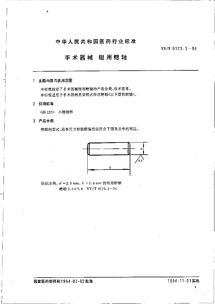 YY/T 0173.3-1994 手术器械 钳用鳃轴