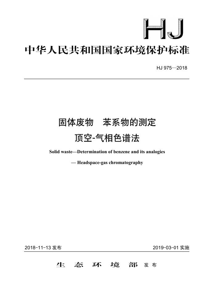 HJ 975-2018 固体废物 苯系物的测定 顶空-气相色谱法
