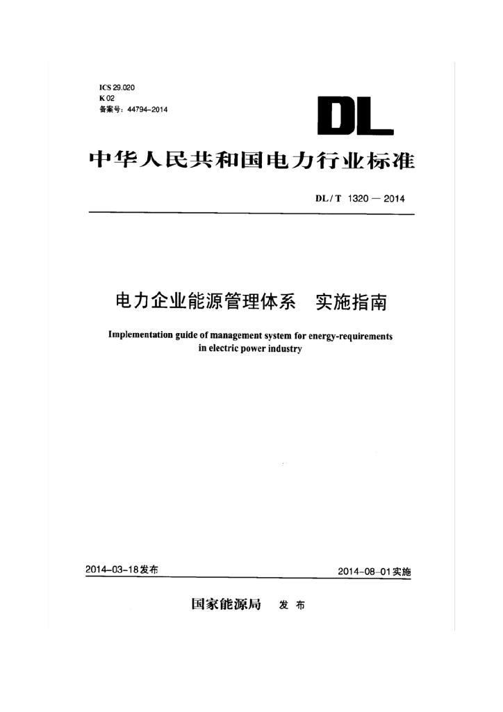 DL/T 1320-2014 电力企业能源管理体系实施指南