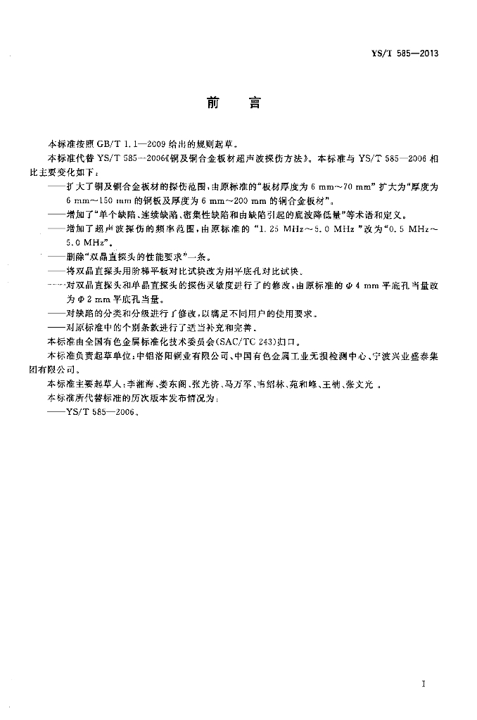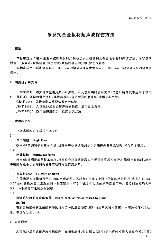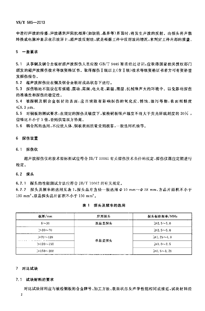 YS/T 585-2013 铜及铜合金板材超声波探伤方法