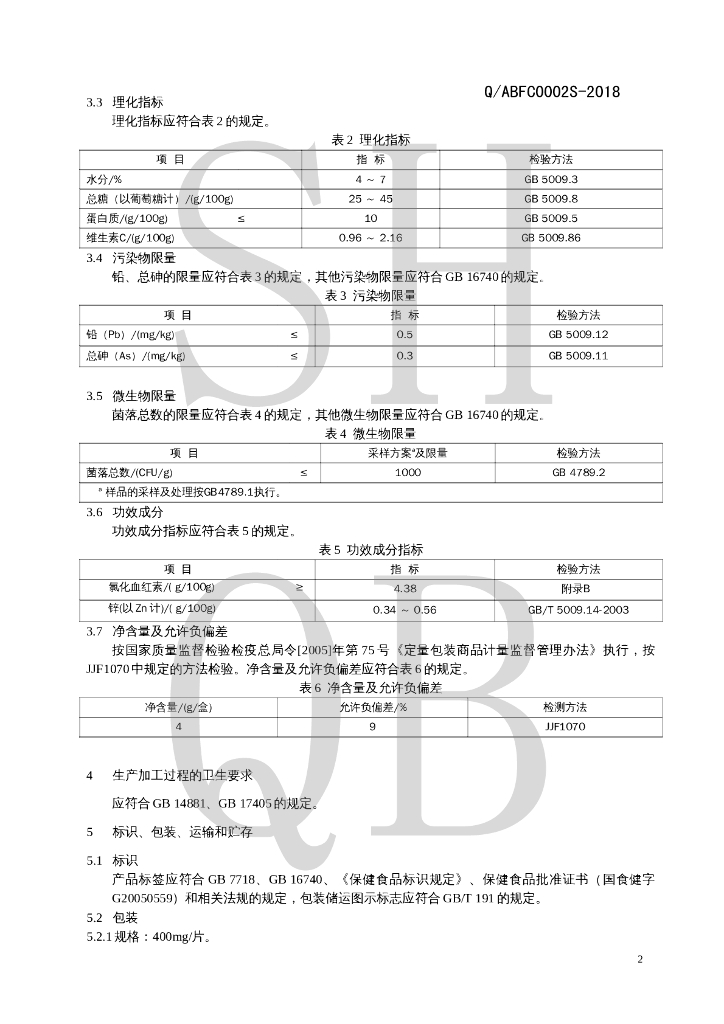 Q/ABFC 0002S-2018 鸿儒牌力血康咀嚼片