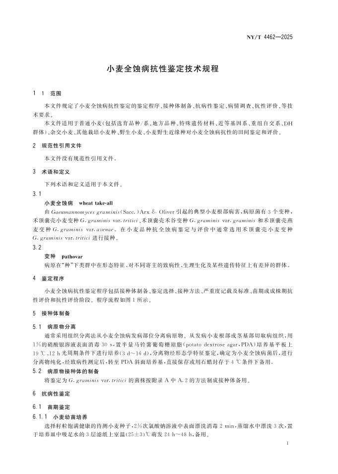 NY/T 4462-2025 小麦全蚀病抗性鉴定技术规程