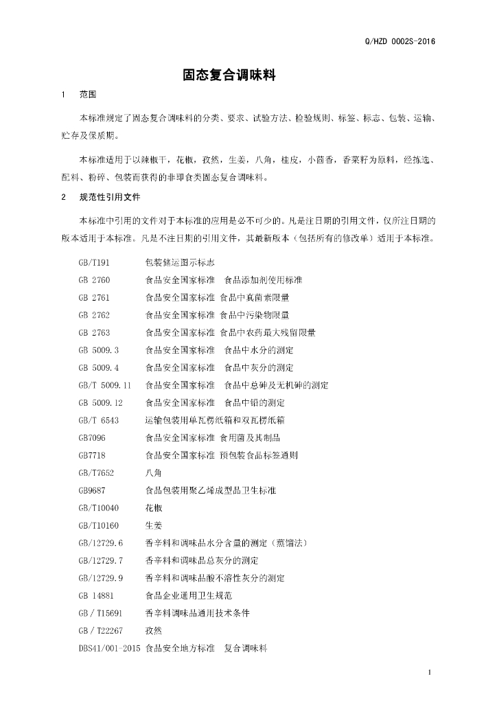 Q/HZD 0002S-2016 河南中大恒源生物科技股份有限公司 固态复合调味料