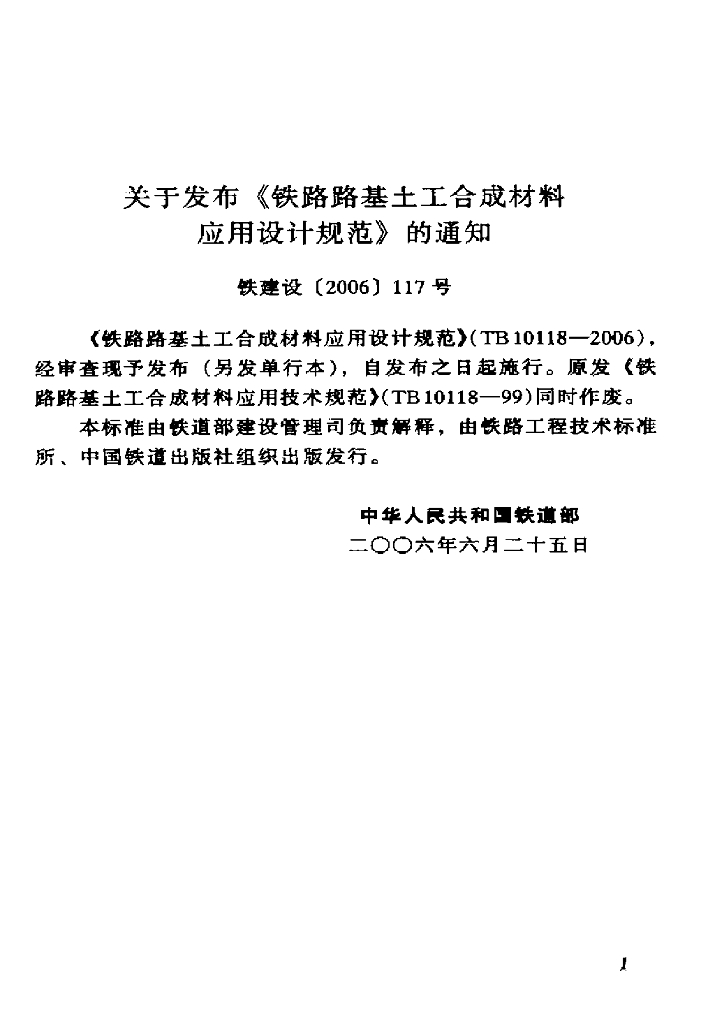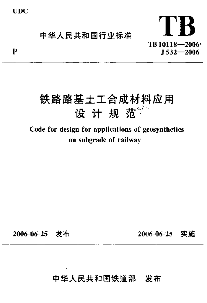 TB 10118-2006 铁路路基土工合成材料应用设计规范