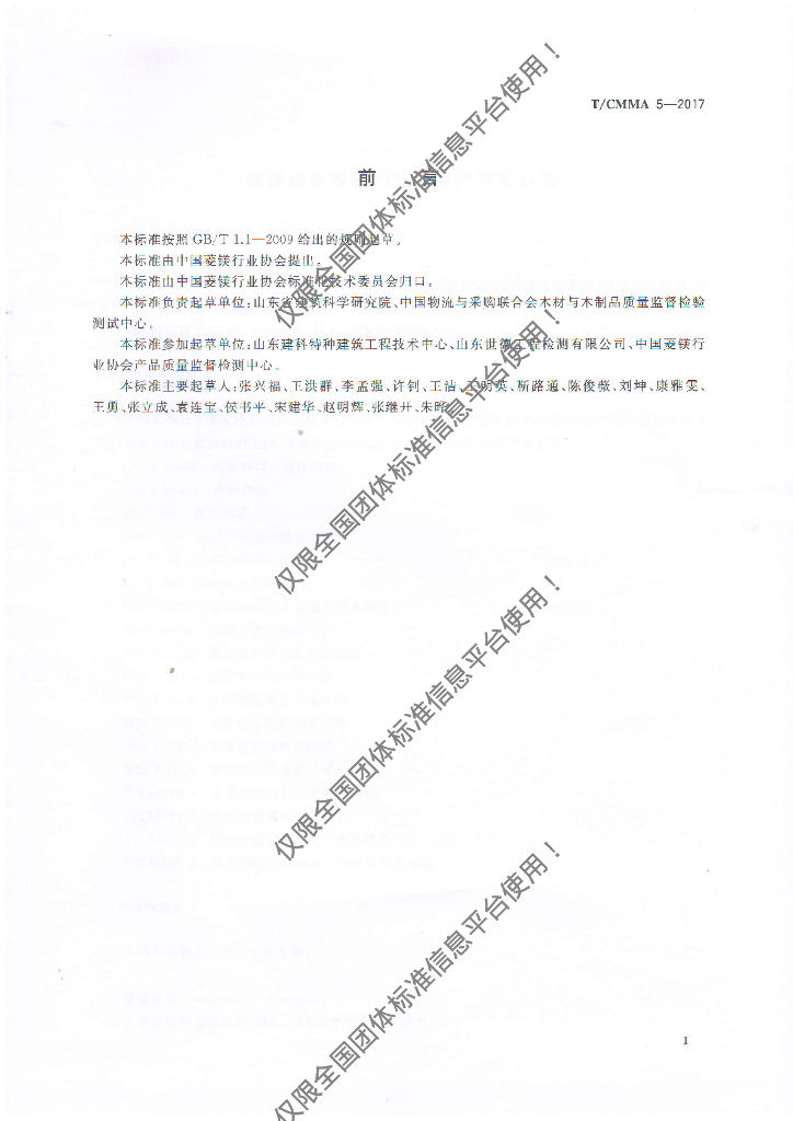 山东省建筑科学研究院、中国物流与采购联合会木材与木制品质量监督检验测试中心、山东建科特种建筑工程技术中心、山东世德工程检测有限公司、中国菱镁行业协会产品质量监督检测中心