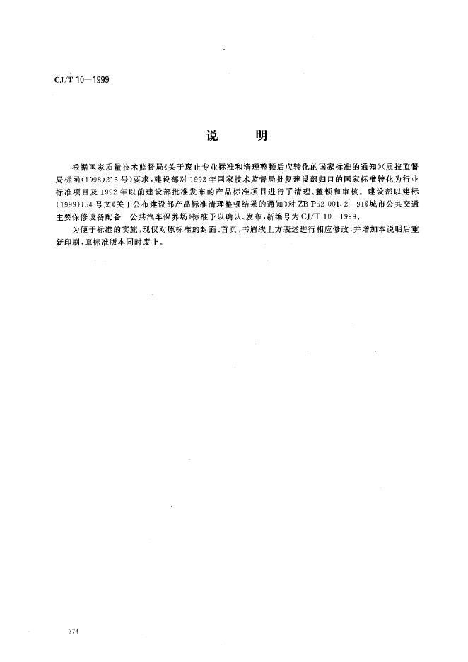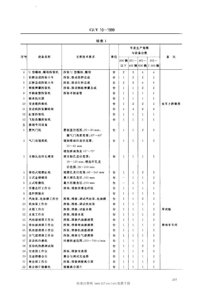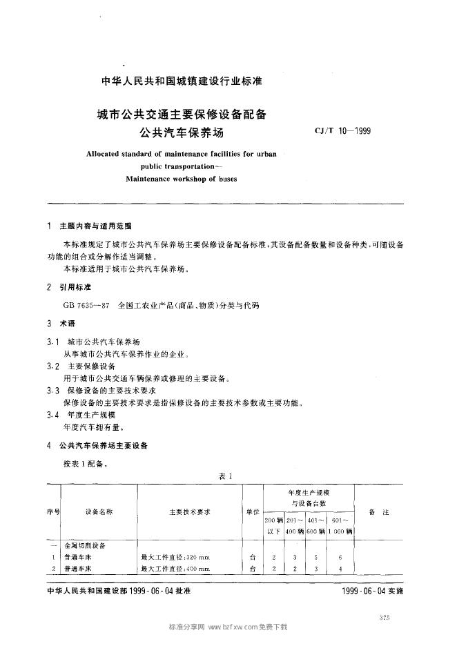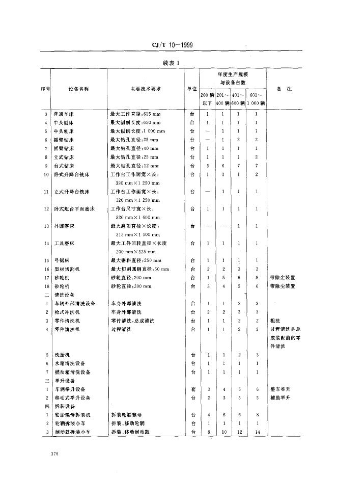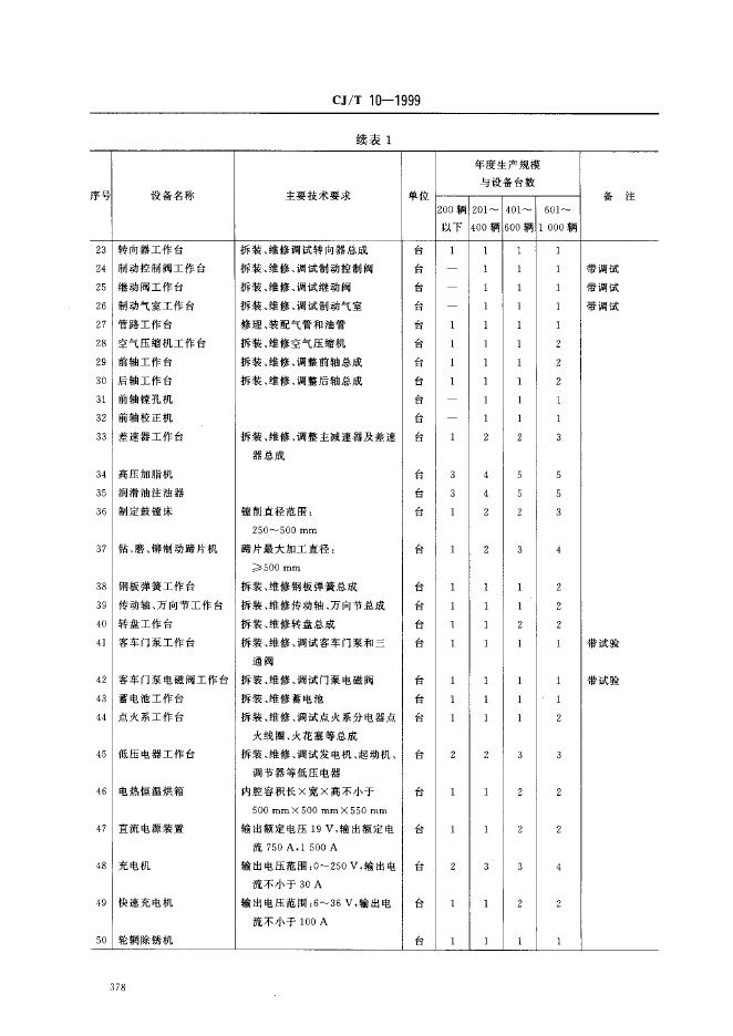 CJ/T 10-1999 城市公共交通主要保修设备配备 公共汽车保养场