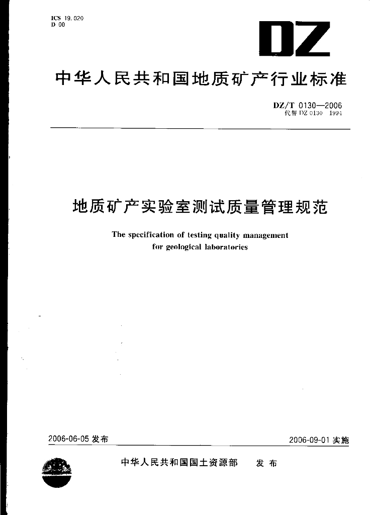 DZ/T 0130.2-2006 地质矿产实验室测试质量管理规范 第2部分:岩石矿物分析试样制备