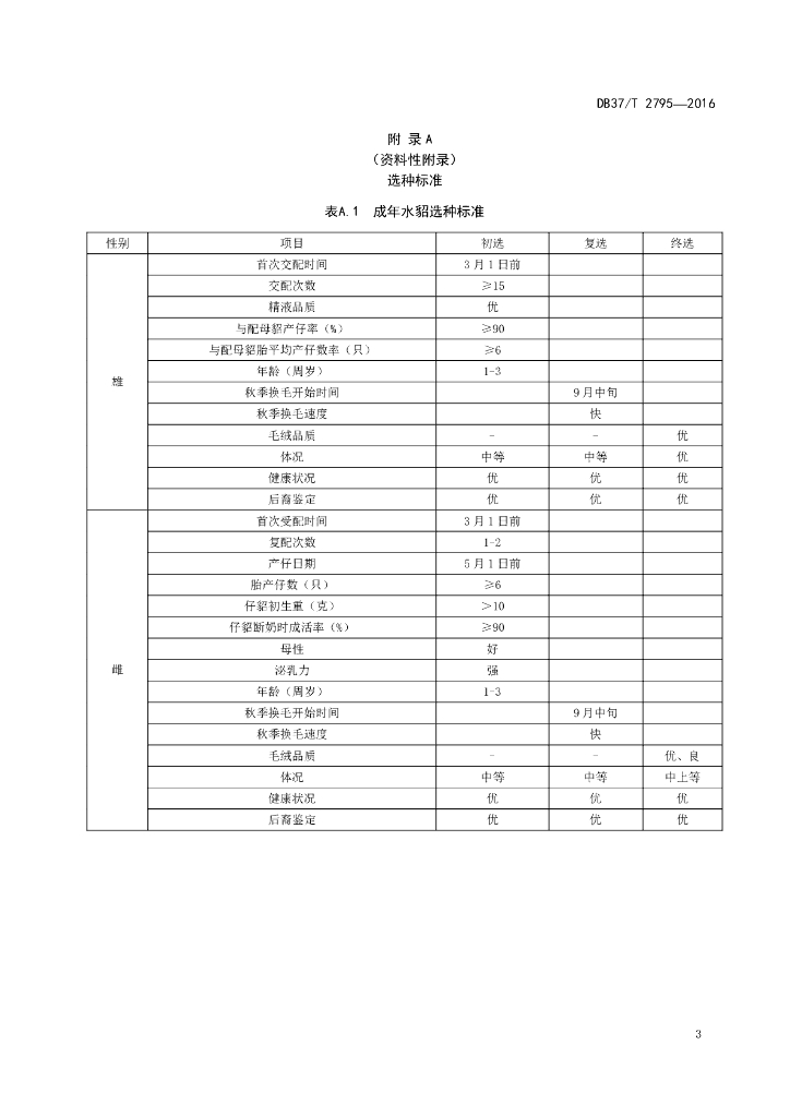 DB37/T 2795-2016 水貂选种技术规程