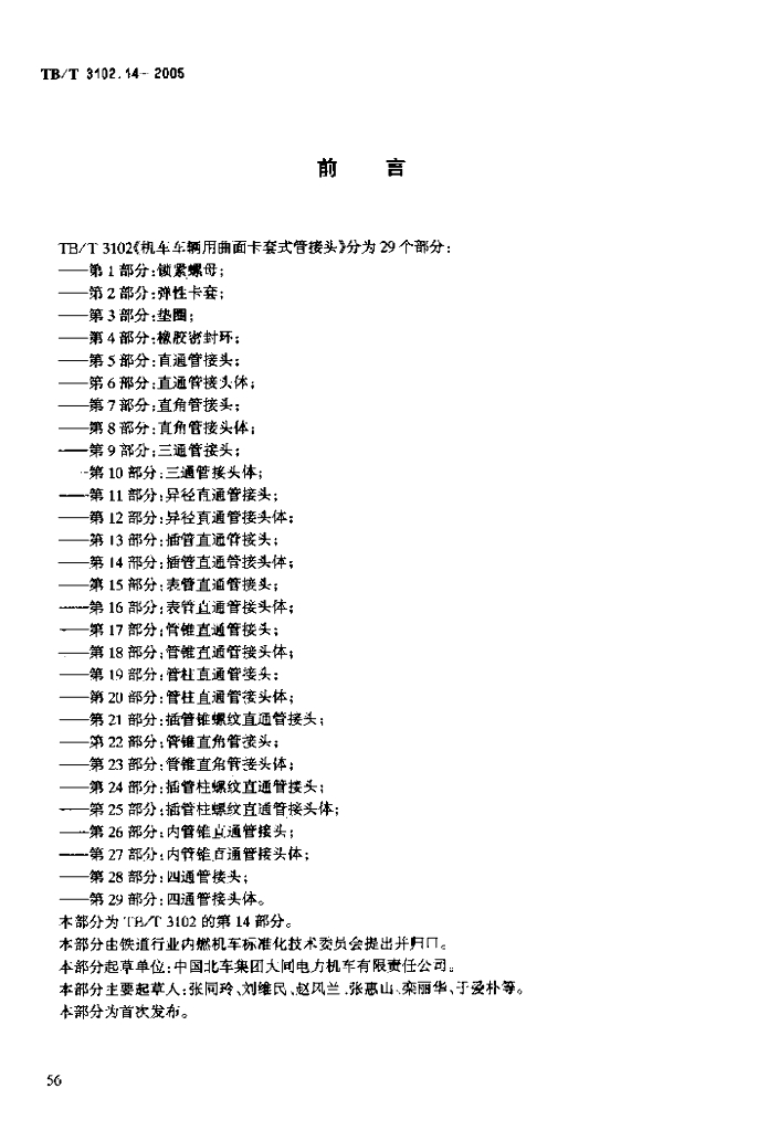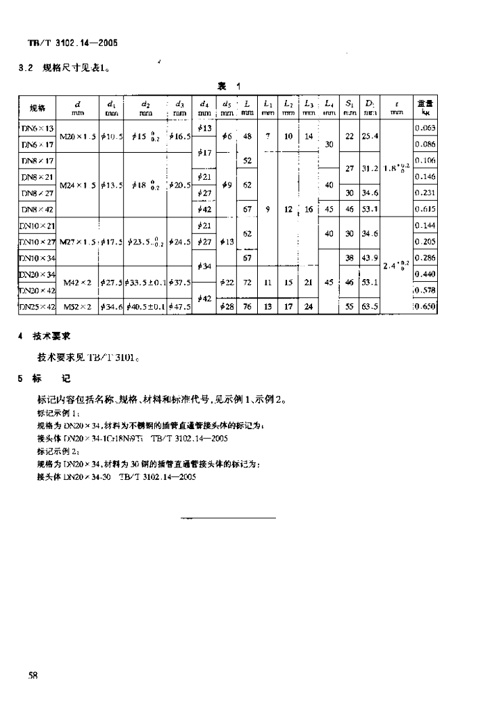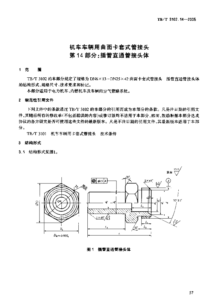 TB/T 3102.14-2005 机车车辆用曲面卡套式管接头 第14部分:插管直通管接头体