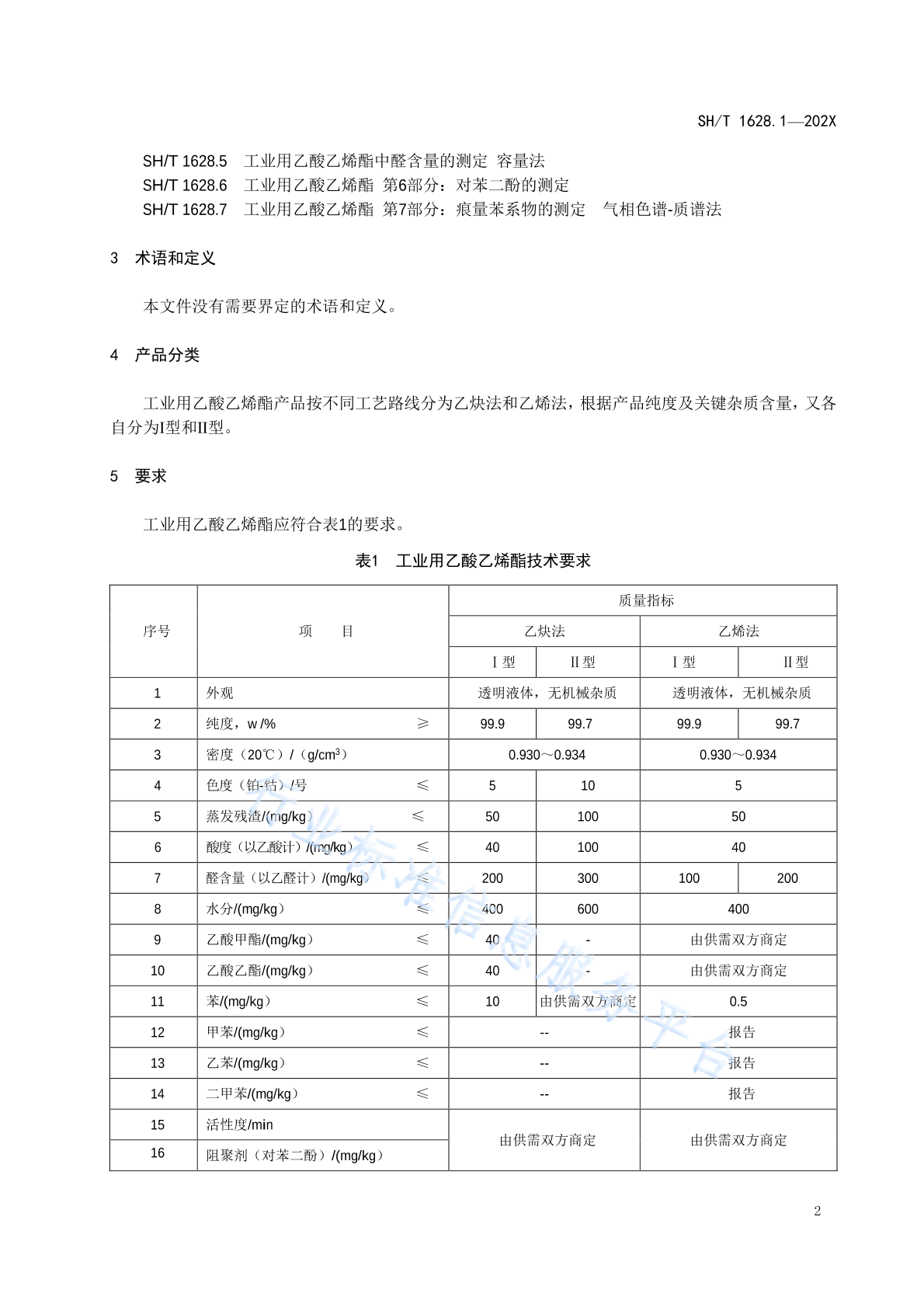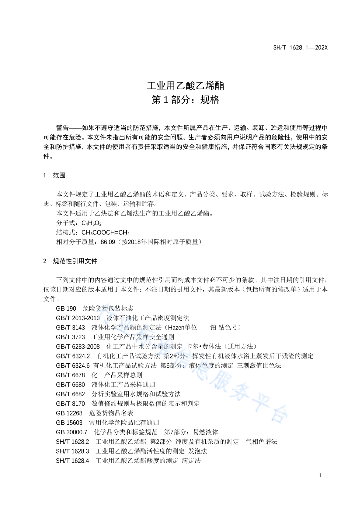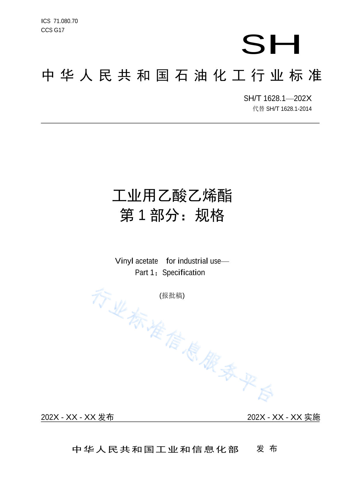 SH/T 1628.1-2023 工业用乙酸乙烯酯 第1部分:规格