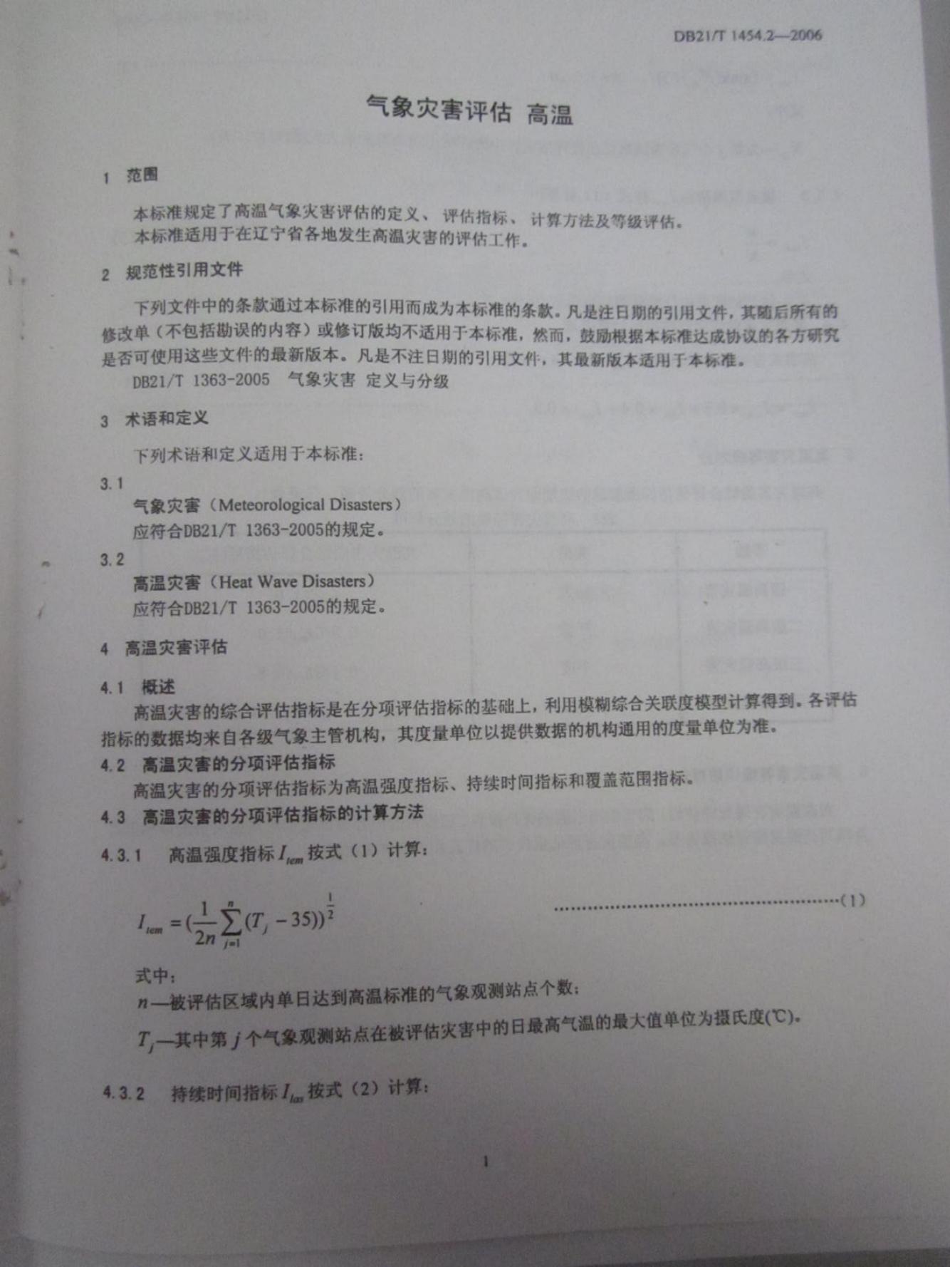 DB21/T 1454.2-2006 气象灾害评估 第2部分:高温