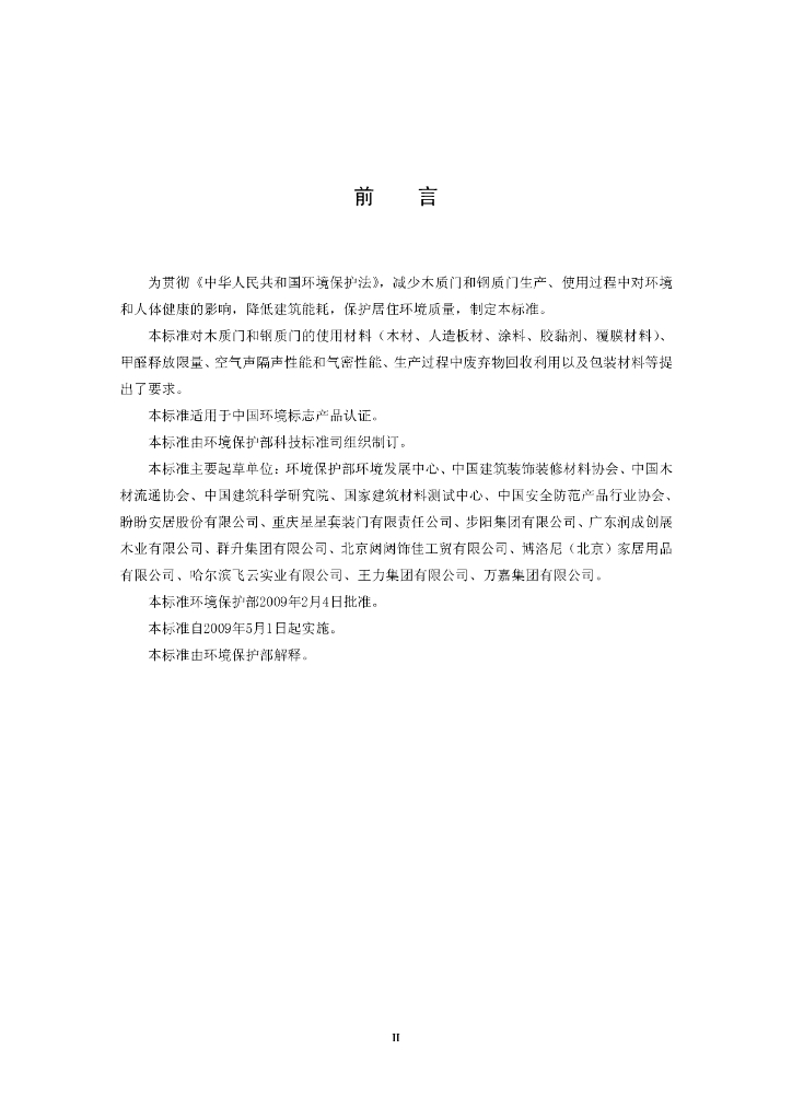 HJ 459-2009 环境标志产品技术要求 木质门和钢质门