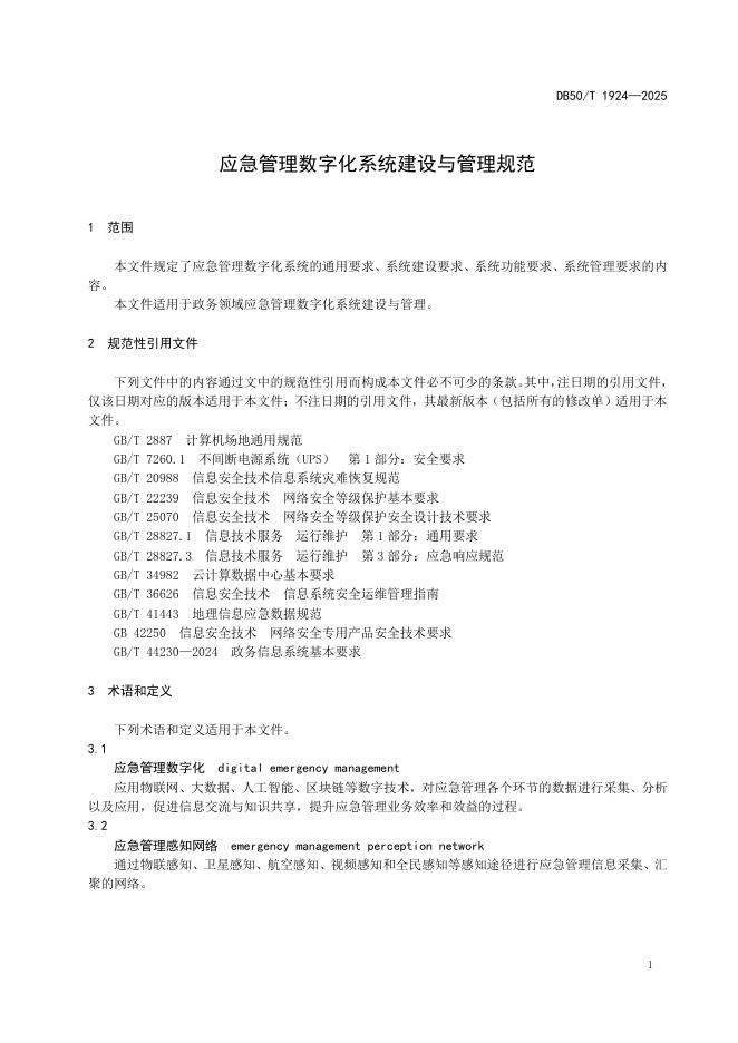 DB50/T 1924-2025 应急管理数字化系统建设与管理规范