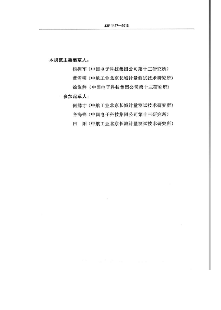 杨拥军(中国电子科技集团公司第十三研究所)、董雪明(中航工业北京长城计量测试技术研究所)、徐淑静(中国电子科技集团公司第十三研究所)、何懿才(中航工业北京长城计量测试技术研究所)、吝海锋(中国电子科技集团公司第十三研究所)、田阳(中航工业北京长城计量测试技术研究所)