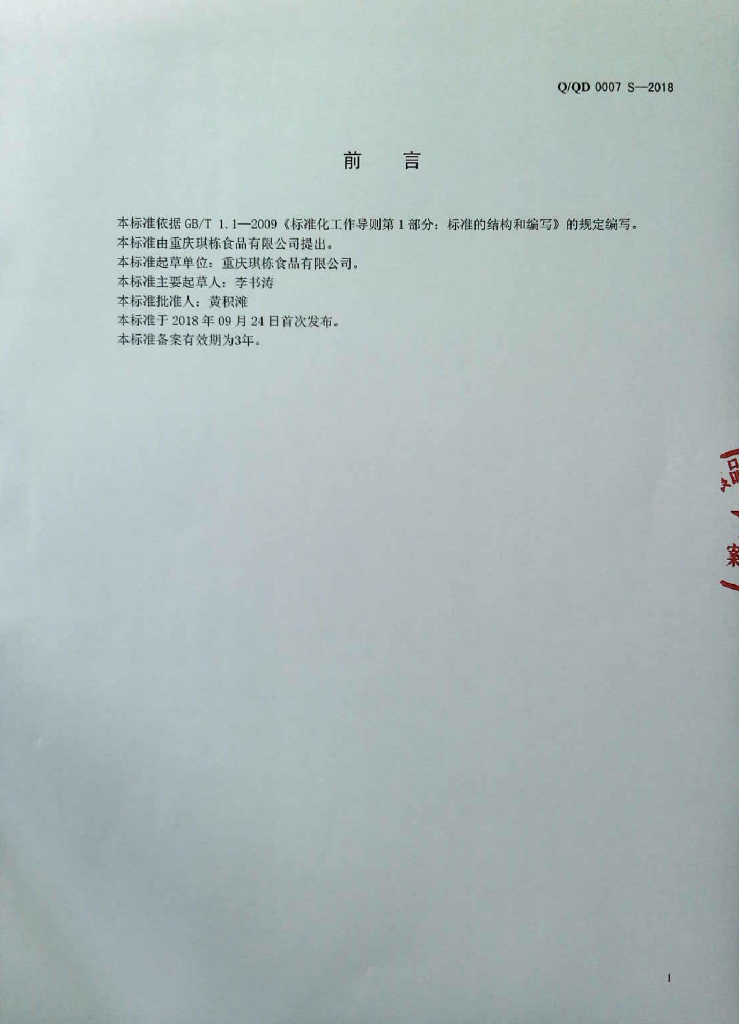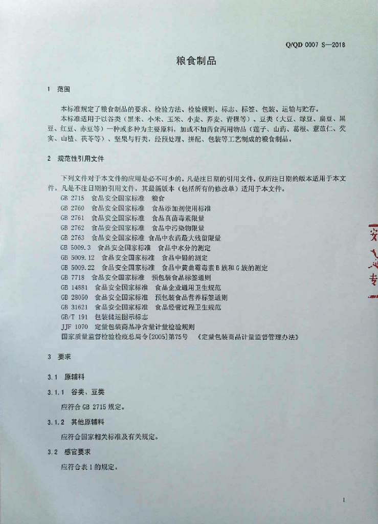 Q/QD 0007S-2018 粮食制品