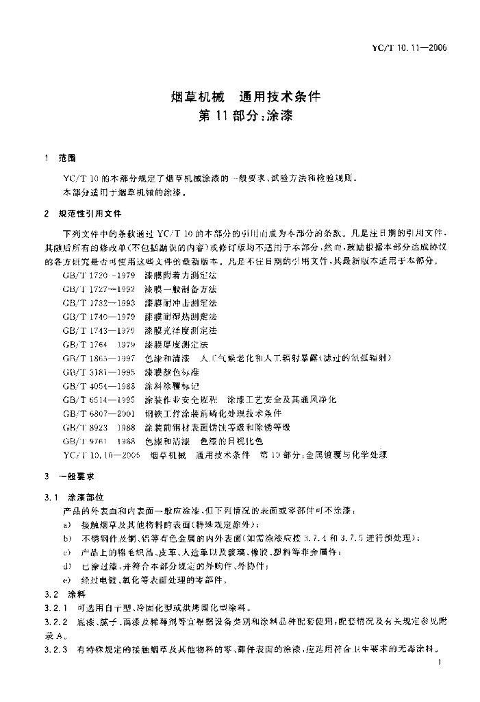 YC/T 10.11-2006 烟草机械 通用技术条件 第11部分:涂漆
