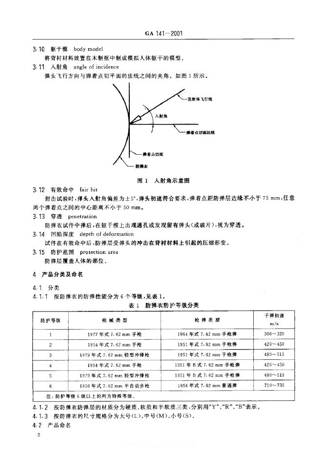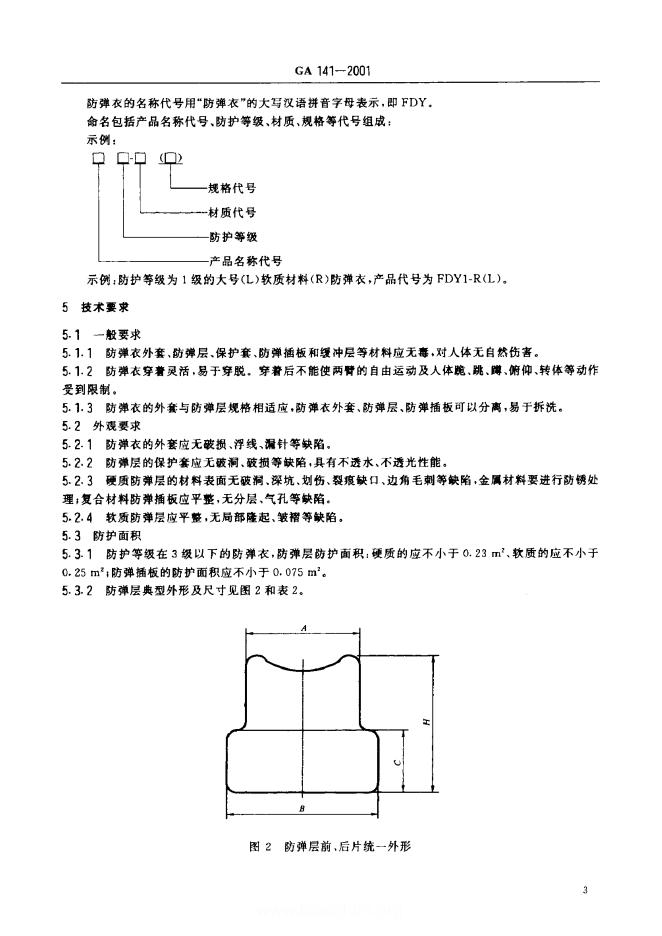 GA 0141-1996 警用防弹衣通用技术条件