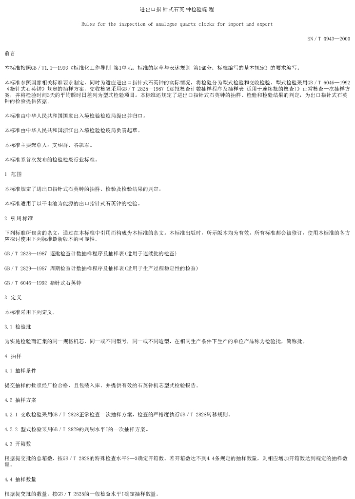 SN/T 0943-2000 进出口指针式石英钟检验规程
