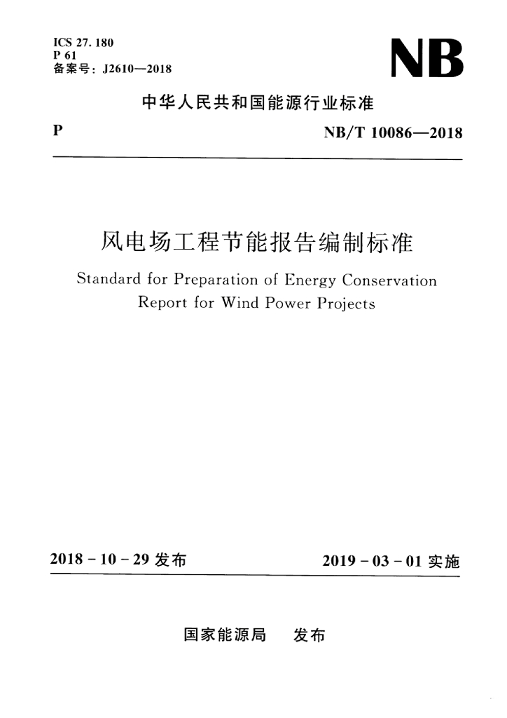 NB/T 10086-2018 风电场工程节能报告编制标准